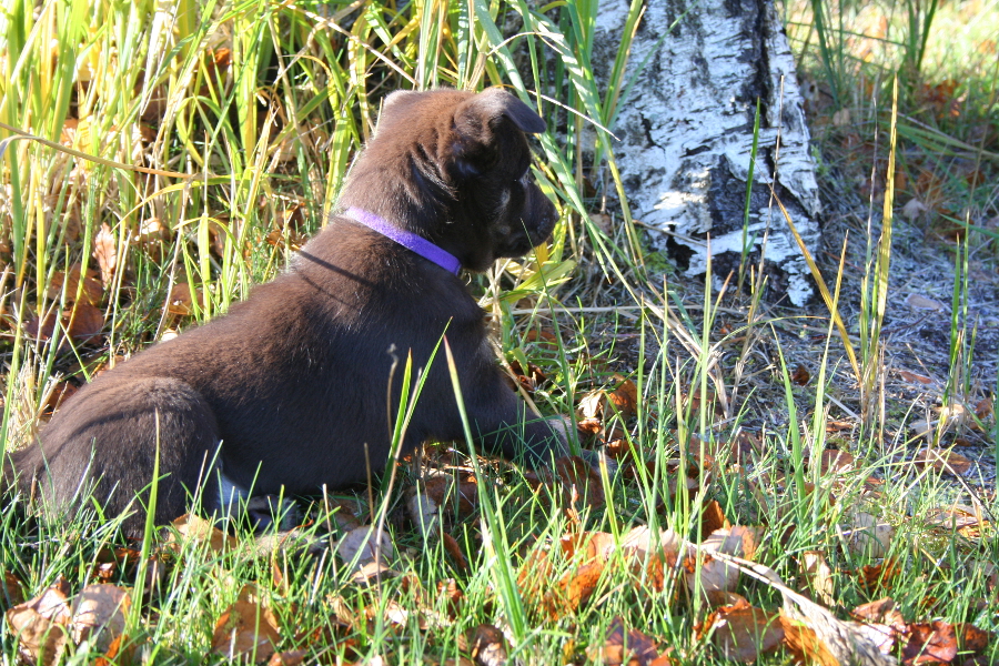 Pennut ovat päässeet päivittäin kerran tai pari ulkoilemaan, riippuen millainen sää ulkona on. Vien vain pari pentua kerrallaan ulos, jotta ne eivät katoa horisonttiin. Tiedä sitten onko sattumaa vai tarkoituksellista, mutta sisälle jääneet pennut eivät useimmitenkaan ole kakanneet sisälle vaan vasta ulos omalla vuorollaan. Voisko ne jo tajuta ulos pääsyn ja tarpeiden teon yhteyden?